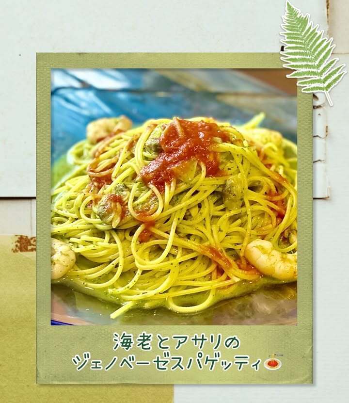 【 海老とアサリのジェノベーゼスパゲッティ🌿🍝】