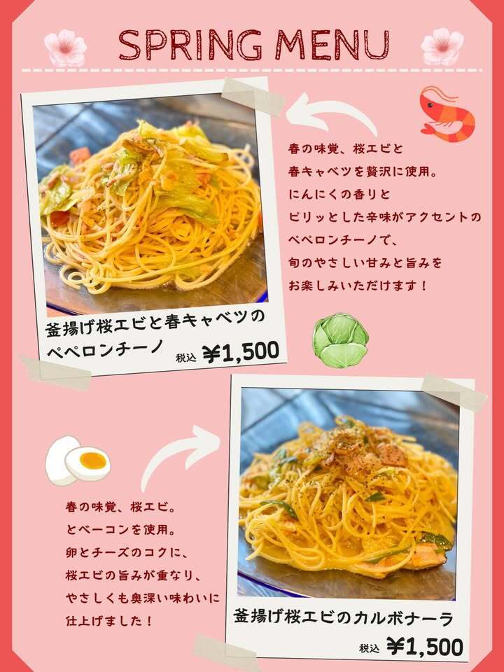 【釜揚げ桜エビと春キャベツのペペロンチーノ】